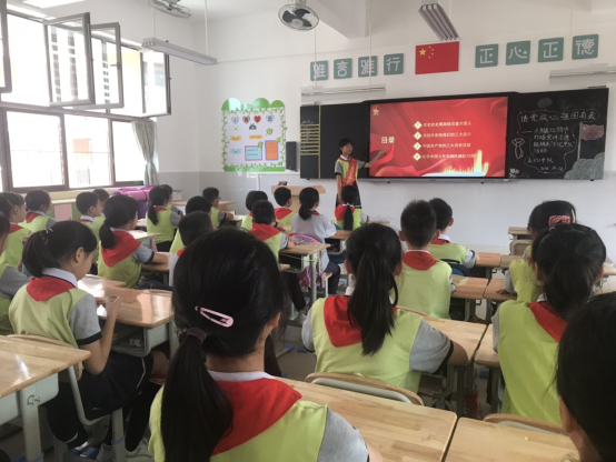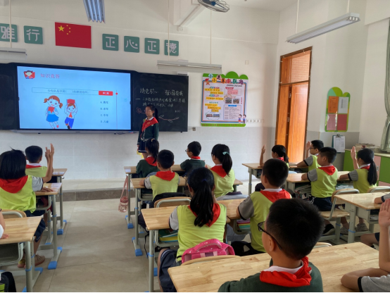 高年級(jí)宣講輕騎兵走進(jìn)三至六年級(jí)各中隊(duì),詳細(xì)地為隊(duì)員介紹了黨的發(fā)展脈絡(luò)、黨的歷史三大啟示、黨的三大歷史貢獻(xiàn)以及少先隊(duì)的相關(guān)知識(shí)。宣講接近尾聲之際,高年級(jí)各中隊(duì)紛紛開(kāi)展了一場(chǎng)激烈的黨史、隊(duì)史知識(shí)競(jìng)賽,少先隊(duì)員們積極踴躍發(fā)言,充分展示了紅色江山后繼有人的良好局面。