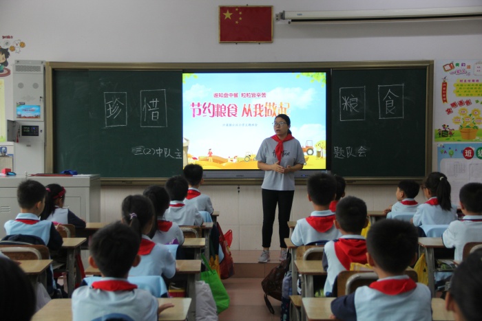 在各班主題隊會上,老師展示了貧困地區(qū)糧食稀缺的現(xiàn)狀以及社會上一些人浪費糧食的現(xiàn)象,兩種對比,讓隊員們從內(nèi)心體會到糧食的來之不易以及“誰知盤中餐,粒粒皆辛苦”的深刻內(nèi)涵,并自覺承諾從現(xiàn)在做起,從自身做起,節(jié)約每一粒糧食,抵制和反對浪費糧食的行為,養(yǎng)成愛糧節(jié)糧的好習(xí)慣。