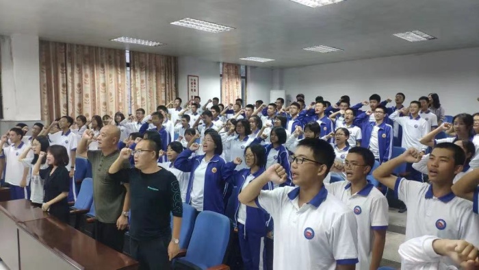 最后,全體同學進行禁毒宣誓,表示禁絕毒品進入校園,珍惜青春珍愛生命的決心。通過此次禁毒宣講活動,古高青年近距離地了解到了毒品知識、認清毒品的危害,提高了積極參與禁毒斗爭的意識,為打造無毒校園、平安校園貢獻一份自己的力量。