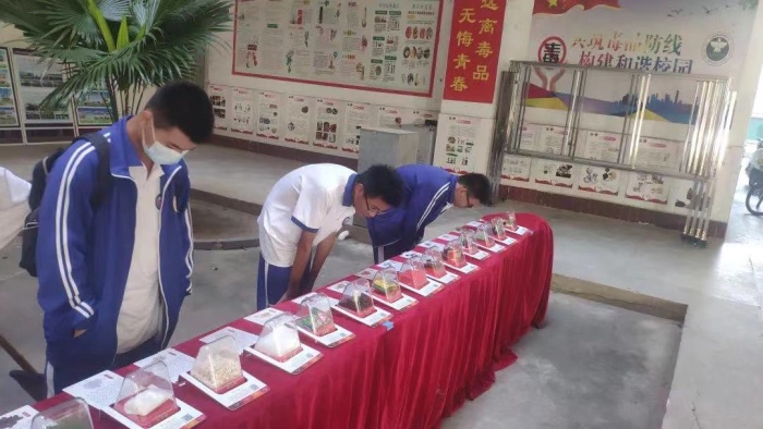 為深入開展毒品預防教育活動,中山市古鎮(zhèn)高級中學于10月24-26日聯(lián)合中山市強制戒毒所舉辦了禁毒圖片展覽和仿真毒品展覽。10月27日下午,中山市司法行政禁毒宣講團的林苑警官為高一學生開展了以“健康人生,綠色無毒”為主題的禁毒教育講座,學校德育處主任王學智、副主任楊寶輝、高一年級主任張電坤、副主任劉雄萬、相關(guān)工作人員及高一學生參與了本次講座。
