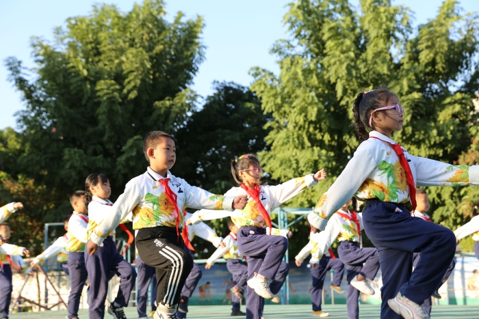 比賽中,同學(xué)們發(fā)揚(yáng)團(tuán)結(jié)一致、奮發(fā)向上的精神。用響亮的口號(hào)、 整齊的步伐、標(biāo)準(zhǔn)的動(dòng)作,展現(xiàn)自己的風(fēng)采???!領(lǐng)操員們口令嘹亮,氣勢(shì)磅礴,領(lǐng)著本班的方隊(duì)斗志昂揚(yáng)地走到主席臺(tái)面前,展示著本班的最佳風(fēng)貌???!廣播操音樂(lè)聲響起,同學(xué)們昂首挺胸,伸臂、擴(kuò)胸、轉(zhuǎn)體、踢腿、彎腰……動(dòng)作嫻熟標(biāo)準(zhǔn),充盈著剛健之美,飛揚(yáng)著青春氣息。他們從動(dòng)作姿態(tài)到面部表情,都體現(xiàn)了東小學(xué)子活潑開(kāi)朗、快樂(lè)向上的校園生活和陽(yáng)光體育的精神風(fēng)貌。