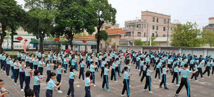 周五下午,隨著出操音樂響起,全體學(xué)生精神抖擻地走向操場。這次廣播操比賽以年級為小組進(jìn)行比賽。伴隨著歡快活潑的音樂,學(xué)生們舒展腰身,做起早操。各班學(xué)生聽著指揮,標(biāo)準(zhǔn)地做著各種動作,整齊劃一,退操整齊有序。評委根據(jù)各班做操動作,隊列協(xié)調(diào)度進(jìn)行評分,獎勵前三名班級。這次廣播操比賽,對日后學(xué)生上課的精神面貌以及學(xué)生上課的自控能力的培養(yǎng)都有一定的促進(jìn)作用。