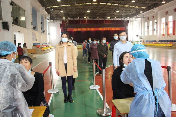 演練分三個情景開展,第一個情景是以廣播講解和現(xiàn)場提問的形式開展發(fā)現(xiàn)有新冠密接者、陽性報告情況時的處置,由馬成海副校長與全體同學(xué)進(jìn)行講解,分別從三個方面進(jìn)行理解和掌握:當(dāng)學(xué)校教職員工、學(xué)生有新冠密接者、陽性報告情況時,配合疾控中心,根據(jù)疾控中心研判,對全校封閉管理,實施對學(xué)生、老師采取科學(xué)的應(yīng)對措施。1、如果學(xué)生未在學(xué)校時,學(xué)校進(jìn)行封閉管理,通知學(xué)生停止返校,留在家里等待學(xué)校的進(jìn)一步通知;2、如果學(xué)生是在校學(xué)習(xí)期間,學(xué)校實施封閉管理,學(xué)生戴好口罩,留在班級等待下一步的安排;3、如果學(xué)生在上學(xué)、放學(xué)途中,則根據(jù)具體要求進(jìn)行安排和布置。接著第二個情景是師生全員檢測核酸演練,演練嚴(yán)格按照要求,學(xué)生按班級輪流集中檢測,在檢測前打好自己的二維碼,現(xiàn)場進(jìn)行掃碼登記、測溫、登記、檢測。檢測程序有條不紊,工作按部就班,很好地詮釋了檢測的要求和做法。最后第三個情景是學(xué)生不舒服產(chǎn)生的嘔吐物的處理方法和做法的演練,在學(xué)生不舒服產(chǎn)生嘔吐物后,學(xué)校的校醫(yī)和清潔工人嚴(yán)格按照處理嘔吐物的方法,對嘔吐物進(jìn)行清理、處理和消毒工作,一件一步,認(rèn)真落實。