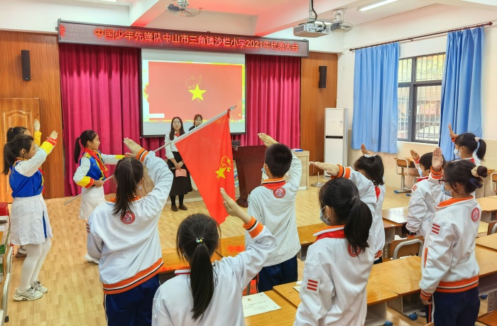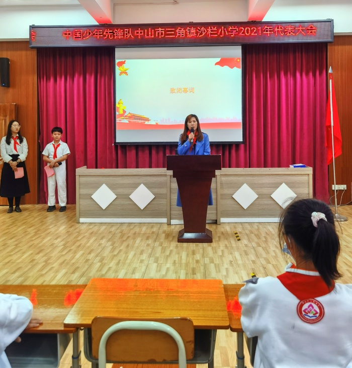 12月20日,中國(guó)少年先鋒隊(duì)中山市三角鎮(zhèn)沙欄小學(xué)2021年代表大會(huì)在沙欄小學(xué)一樓階梯室召開(kāi)。中山市三角鎮(zhèn)團(tuán)委副書(shū)記、少先隊(duì)總輔導(dǎo)員許嘉天老師,沙欄小學(xué)黨支部書(shū)記崔煥英校長(zhǎng)、副校長(zhǎng)黎文輝、家委代表、行政代表、輔導(dǎo)員代表以及少先隊(duì)員代表共74人出席了本次會(huì)議。