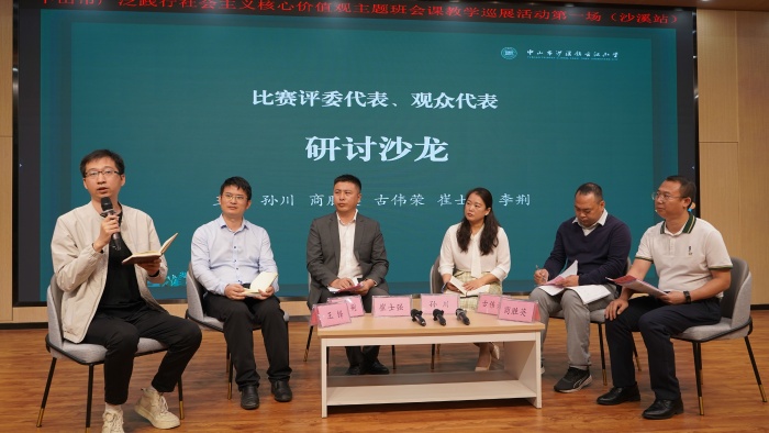 兩節(jié)精彩的主題班會課后,開發(fā)區(qū)教體中心德育專干王鐸、小欖鎮(zhèn)升平小學(xué)班主任孫川、沙溪鎮(zhèn)云漢小學(xué)校長李荊、三鄉(xiāng)鎮(zhèn)大布小學(xué)德育主任古偉榮、小欖鎮(zhèn)德星小學(xué)德育副校長商勝英、大信學(xué)校德育主任崔士強進(jìn)行了教學(xué)研討沙龍,對兩節(jié)精彩的主題班會課進(jìn)行點評,并解答臺下班主任的問題,大家在思維碰撞中深化認(rèn)識,在交流中受到啟發(fā),讓與會人員對如何更有針對性地開展主題班會有了更為深入的思考!