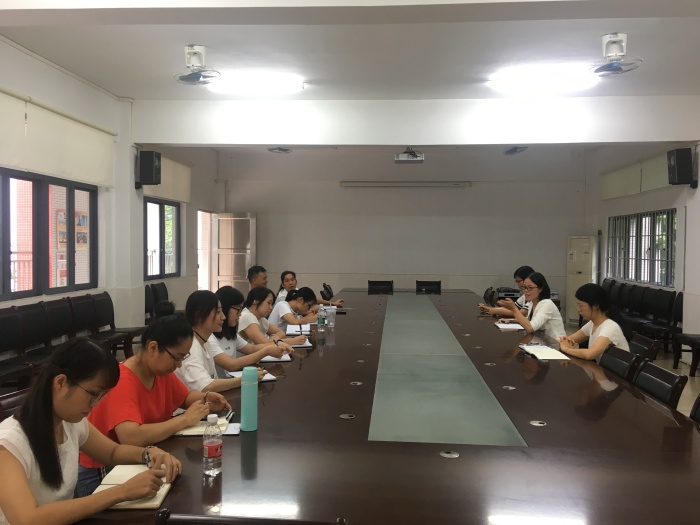 首先是廖副校長進(jìn)行講話。她先對新學(xué)期各科科組長的人選確立進(jìn)行了簡單說明,并對各位科組長能勇挑重?fù)?dān)表示肯定。接著,廖副校長對全體科組長提出了工作要求,她希望全體科組長要明確科組的角色定位,總結(jié)過去,發(fā)現(xiàn)不足,找到解決問題的切入點,利用自身過硬的專業(yè)水平引領(lǐng)科組老師共同成長。除此之外,廖副校長要求各位科組長能通過組織豐富的教研活動、專題學(xué)習(xí)活動,調(diào)動老師們的積極性,提高教育教學(xué)質(zhì)量。廖副校長講話后,區(qū)主任布置了接下來的工作安排。她強調(diào)各位科組長要結(jié)合科組實際情況做好科組計劃。然后,劉副主任補充發(fā)言。她表示非常感謝老師們對教導(dǎo)處工作的配合,還表揚了部分表現(xiàn)積極的老師。劉副主任還提醒各位科組長們要關(guān)注老師們的師德師風(fēng)問題,發(fā)現(xiàn)問題及時溝通。還有,科組長和備課組長要通力合作,多溝通交流。劉副主任發(fā)言后,余副主任表示希望各位科組長能把學(xué)校通知的信息及時傳達(dá)給老師們,也要將老師們反映的問題及時上報,充當(dāng)好橋梁的作用。