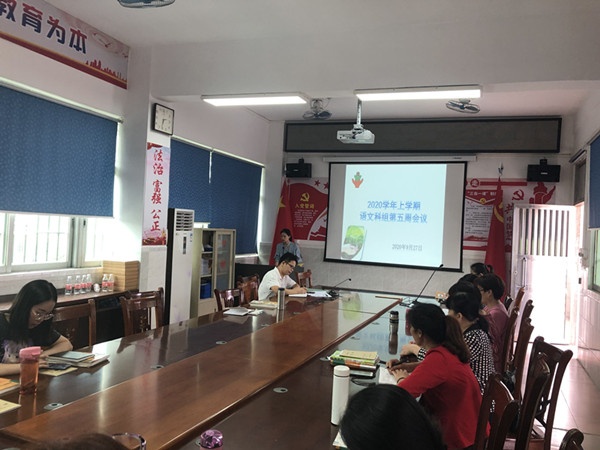 本次會議分為三個環(huán)節(jié),第一環(huán)節(jié)是語文科組的常規(guī)活動時間,本次由四、五、六年級語文教師齊讀朗誦現(xiàn)代優(yōu)美詩歌《墻頭草》、《沙揚娜拉》。在此之后,科組檢查并登記了,各語文教師的聽課情況。第二環(huán)節(jié),黃老師認真研讀了《2020-2021學年度上學期古鎮(zhèn)鎮(zhèn)小學語文中心教研組工作計劃》、《2020-2021學年度上學期古鎮(zhèn)鎮(zhèn)中小學中華優(yōu)秀傳統(tǒng)文化教育工作主要內容》,傳達了鎮(zhèn)教辦的工作精神。并且根據(jù)實際情況,將兩項任務,分別羅列了:課堂改革、課堂活動、學生活動等五條要點,帶領全體語文教師領悟上級文件的工作意見和重要內容。黃老師也對一些接下來開展的學生競賽活動做了簡單清晰地部署。第三環(huán)節(jié),在朱主任的引領下,全體教師認真閱讀了《古鎮(zhèn)鎮(zhèn)小學教師教學常規(guī)管理工作規(guī)范》,并對“認真?zhèn)湔n、認真上課、認真輔導”等三項內容,做了細致的解析和要求。緊接著朱主任的發(fā)言,袁校長做了總結。她指出,語文科組是擁有人數(shù)最多、力量最大的一個科組,所以要集中力量共同進步。按照鎮(zhèn)教辦的要求,做到心中有計劃,同時圍繞學校的實際情況,我們也要巧妙開展“同課同構活動”的學習方法探究活動、“優(yōu)秀傳統(tǒng)文化活動與藝術節(jié)”相融合的計劃、加大語文特色的常規(guī)活動、利用教學反思和聽課評課促進課堂改革和教師進步等等建議。