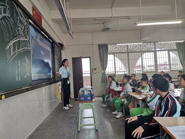 接著,第二部分是交流閱讀單的內(nèi)容,深入了解莊子的思想學(xué)派、分享莊子和惠子的故事、交流觀看完視頻《逍遙游》的感受。學(xué)生對新書的拆封迫切不已,每個(gè)小組輪流上臺領(lǐng)書,合影留念。