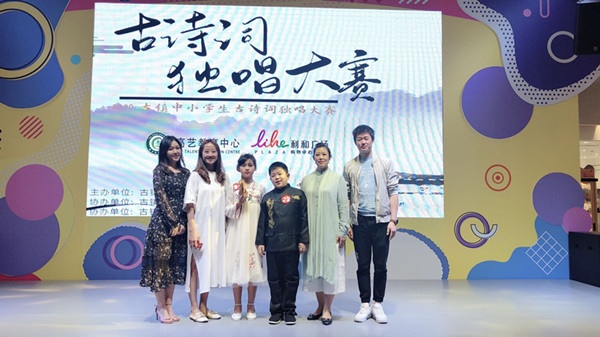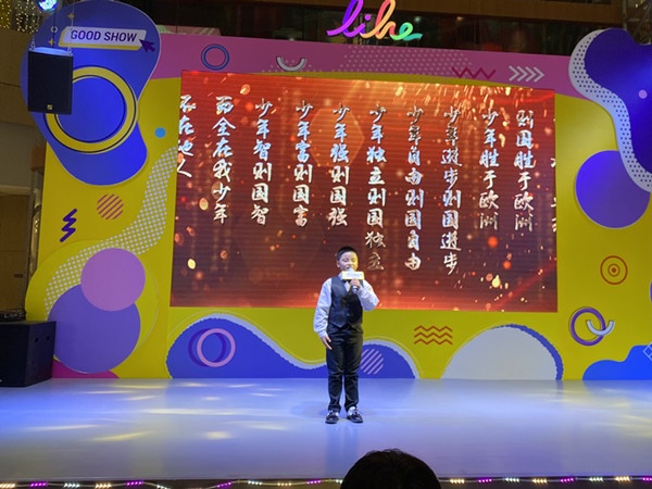 六5班區(qū)泳楠表演唱歌曲《江南》,她身著淺紅色漢服,手持一支荷葉,俏皮可愛邊歌邊舞,臺風(fēng)穩(wěn)健。獲得二等獎。六5班鐘林霞 同學(xué)演唱歌曲《長歌行》,歌曲出自漢代樂府詩,她身著一襲漢裝走上舞臺,美妙的歌聲飄蕩在整個大廳。另外兩位代表曹二小學(xué)參賽演唱的是四4班郭志鴻和五2班熊禹添,他們演唱的歌曲出自清代梁啟超《少年中國說》 ,他們身著中山裝,鏗鏘有力的演唱迎來陣陣喝彩?! ?/p>
