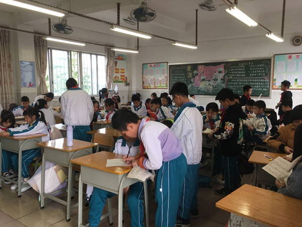 活動二“誦經(jīng)典詩詞,做書香少年”古詩背誦比賽活動。最后的古詩詞背誦大賽,由語文科組負責,開學初全校宣傳發(fā)動,利用課前誦讀、課間演讀、課后賽讀等多樣形式,營造學生人人會背古詩,時時能背古詩,處處能背古詩的文化氛圍。在比賽的當天下午,通過高年級互評,中高年級考評低年級的形式,在各班級進行比賽活動。整個校園的教室、走廊都不斷傳來郎朗的背誦聲音,在古二校園的上空久久回蕩。