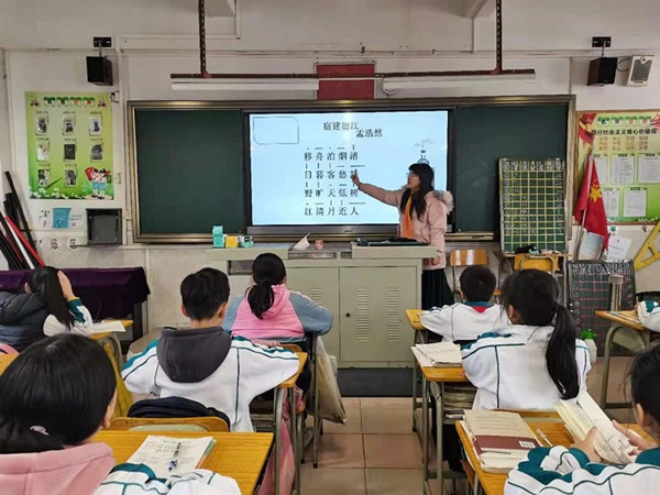 緊接著利用周五午練的時間,王老師在小主人TV室,向全校學生講解了什么是吟誦,還帶同學們認識了基礎的吟誦符號。認識古詩文中的平仄,聲調(diào)的短促與延長。最后各班自由開展了吟誦學習,同學們以《宿建德江》、《夏日絕句》、《游園不值》為例,盡情享受吟誦的魅力,感受吟誦的快樂。