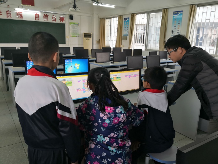 海洲第一小學(xué)非常重視對(duì)學(xué)生信息技術(shù)的培養(yǎng),開設(shè)了創(chuàng)客興趣班,主管信息技術(shù)教學(xué)的郭偉斌老師經(jīng)常帶領(lǐng)幾十位孩子暢游在編程世界里。四(4)班鄧韻祈同學(xué)在創(chuàng)客班里表現(xiàn)突出,認(rèn)真完成每一個(gè)任務(wù)。她勇于思考,提煉出自己的想法,然后把自己的想法付諸于實(shí)踐,運(yùn)用科學(xué)的技術(shù)和手段,動(dòng)手把內(nèi)心的想法變?yōu)楝F(xiàn)實(shí)。