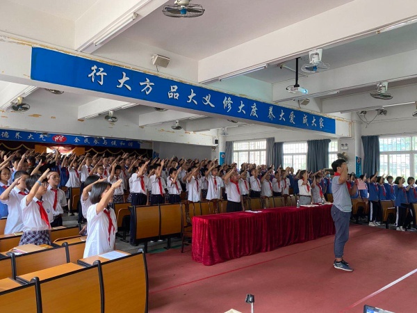 2020年6月8日星期一下午第7節(jié)課,海洲初級(jí)中學(xué)舉行了隆重、熱烈、有意義的初一少先隊(duì)離隊(duì)教育儀式,給隊(duì)員留下了美好的印象,使隊(duì)員們明白了離隊(duì)不是少先隊(duì)員組織生命的終點(diǎn),而是邁向更高更強(qiáng)目標(biāo)的新起點(diǎn)。