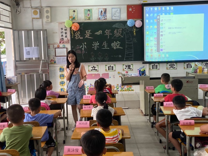 當(dāng)天下午,一年級(jí)的新生在家長(zhǎng)的帶領(lǐng)下,高高興興地來(lái)到校園,按照學(xué)校的規(guī)劃先走紅地毯進(jìn)校園,然后簽到、找教室、找座位,此時(shí)孩子們臉上露出了初入校園的好奇和興奮的笑容。隨后,家長(zhǎng)們帶小孩到二樓班級(jí)簽到,并掃描二維碼加入班級(jí)微信群。