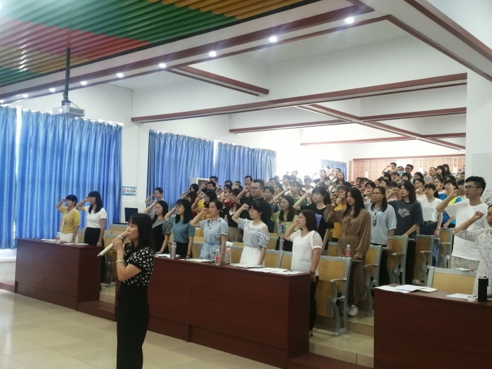 解讀完畢,在歐慧芳的組織下,全體老師起立,舉起右手,莊嚴(yán)地進(jìn)行了師德承諾宣誓。頓時(shí),響亮整齊的聲音在階梯室上室回響,表達(dá)了老師們不僅用語言承諾、還將用行動(dòng)實(shí)踐的信心和決心。