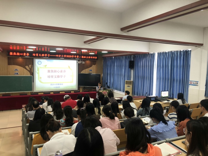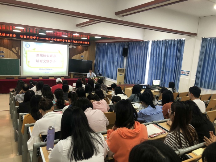 打印 |為了讓班主任進一步了解學(xué)生發(fā)展核心素養(yǎng)的三個方面、六大素養(yǎng)和十八個基本要點,全面落實學(xué)校培育文雅學(xué)子的工作目標,經(jīng)學(xué)校德育處籌劃, 11月2日上午,四沙小學(xué)在階梯室舉行了題為“聚焦核心素養(yǎng) 培育文雅學(xué)子”班主任培訓(xùn)會。