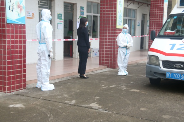 上午第三節(jié)課上課時(shí),初三(3)班任課教師突發(fā)身體不適,體溫檢測(cè)37.3度,帶有咳嗽頭疼等癥狀,并在14天內(nèi)與疫情發(fā)生地人員有接觸,被護(hù)送到學(xué)校觀察3室進(jìn)行等候,校醫(yī)到場(chǎng)后,給發(fā)熱老師核實(shí)體溫,詢問并登記該老師流行病學(xué)史,隨即向?qū)W校防控領(lǐng)導(dǎo)組負(fù)責(zé)人報(bào)告情況,學(xué)校負(fù)責(zé)人根據(jù)反映的情況立即通知橫欄醫(yī)院安排救護(hù)車把患者接到醫(yī)院做進(jìn)一步的檢查。待醫(yī)院核實(shí)情況后,隨即向鎮(zhèn)防疫部門匯報(bào)相關(guān)情況,并在防疫部門的指導(dǎo)下對(duì)相關(guān)學(xué)生、教師進(jìn)行管控,對(duì)涉及室場(chǎng)進(jìn)行消毒及相關(guān)后續(xù)工作。同時(shí)做好學(xué)生心理輔導(dǎo)和對(duì)家長(zhǎng)進(jìn)行情況反饋。