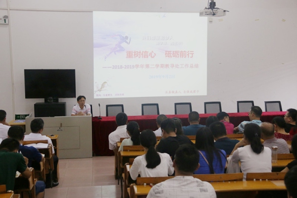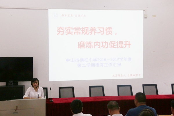 回顧腳印,反思成長軌跡,瞻眺未來。2019年9月2日下午,中山市橫欄中學(xué)全體領(lǐng)導(dǎo)、教師齊聚學(xué)校階梯會議室,進(jìn)行2018-2019學(xué)年度第二學(xué)期德育、教學(xué)期末工作總結(jié),總結(jié)會由辦公室主任劉凌云主持。