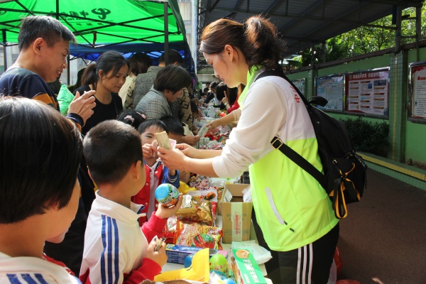 在義賣會的現(xiàn)場,可愛而又富有創(chuàng)意的義賣宣傳畫、琳瑯滿目的義賣小物品和小義賣員們小響亮的吆喝聲,招徠許多師生,每個(gè)義賣店鋪前都人頭攢動。大家紛紛慷慨解囊,積極參與到活動中來。同學(xué)們不僅在買賣中體會了交易的規(guī)則,更體驗(yàn)到了一份奉獻(xiàn)、付出的快樂。