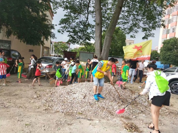 隨后,志愿者們回到學(xué)校。尹校長(zhǎng)帶領(lǐng)大家對(duì)學(xué)校外面的停車場(chǎng)區(qū)域和健身廣場(chǎng)進(jìn)行細(xì)致的打掃,清除各個(gè)死角的塑料垃圾、枯枝落葉及其他各種垃圾。盡管天氣炎熱,但我們的志愿者們依然興致勃勃,以飽滿的熱情參與此次活動(dòng)。經(jīng)過(guò)1個(gè)多小時(shí)的奮戰(zhàn),付出得到了回報(bào),停車場(chǎng)和健身廣場(chǎng)和校園終于變得干凈美麗了。