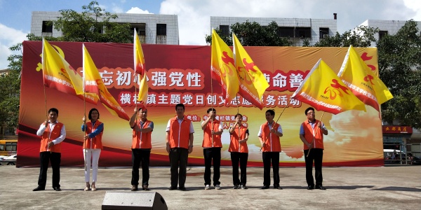 首先由學(xué)校校長(zhǎng)尹少軍帶領(lǐng)創(chuàng)文志愿者,前往健身廣場(chǎng)參加創(chuàng)建文明城鎮(zhèn)啟動(dòng)儀式。啟動(dòng)儀式上,橫欄鎮(zhèn)黨委副書記、鎮(zhèn)長(zhǎng)陳永華做了動(dòng)員講話,他希望各級(jí)黨組織的每一位黨員都要身先士卒,不但自己要積極參與到創(chuàng)建工作中來(lái),還要帶動(dòng)身邊人也要積極參與創(chuàng)建文明城鎮(zhèn)的志愿工作中來(lái),讓創(chuàng)文工作成為常態(tài)化。接著,橫欄鎮(zhèn)黨委書記勞國(guó)南為8個(gè)機(jī)關(guān)黨支部志愿服務(wù)隊(duì)和7個(gè)學(xué)校黨支部志愿服務(wù)隊(duì)進(jìn)行了授旗,并宣布橫欄鎮(zhèn)主題黨日創(chuàng)文志愿服務(wù)活動(dòng)正式啟動(dòng)。