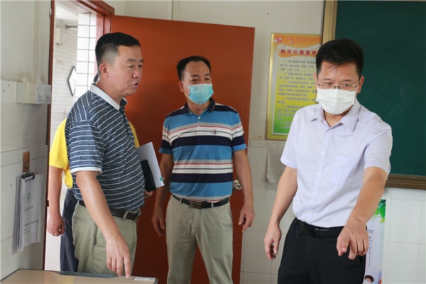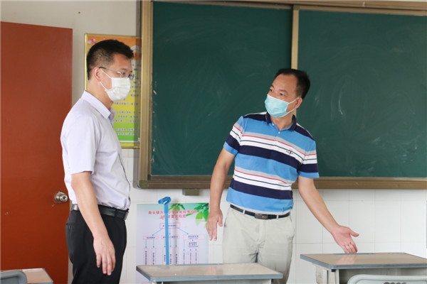 2020年8月28日上午,南頭鎮(zhèn)黨委副書記、鎮(zhèn)長藍(lán)海斌,黨委委員、副鎮(zhèn)長張均標(biāo),鎮(zhèn)紀(jì)委書記余漾,以及鎮(zhèn)文體教育局和衛(wèi)計(jì)局負(fù)責(zé)人等一行到升輝小學(xué)督導(dǎo)開學(xué)工作情況。