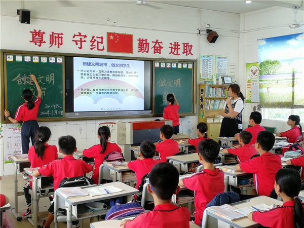 班會(huì)課上,各班主任們進(jìn)行創(chuàng)建文明城市知識(shí)宣傳,倡導(dǎo)學(xué)生們從自己做起,從小事做起,從身邊做起,爭(zhēng)當(dāng)文明小市民;通過(guò)PPT課件,讓學(xué)生懂得亂闖紅燈、亂吐亂扔、亂寫亂畫、亂掛亂貼是影響環(huán)境衛(wèi)生的不文明行為,希望能通過(guò)孩子對(duì)不文明行為的勸導(dǎo),潛移默化地影響大人及家庭的文明行為,從而促進(jìn)城市文明創(chuàng)建活動(dòng)的開展。