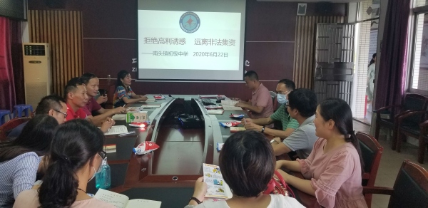 為使廣大師生認(rèn)清非法集資的本質(zhì)和社會(huì)危害,增強(qiáng)風(fēng)險(xiǎn)防范和投資損益自我承擔(dān)責(zé)任意識(shí),維護(hù)自身合法權(quán)益,建設(shè)文明和諧校園環(huán)境。6月22日,南頭鎮(zhèn)初級(jí)中學(xué)開(kāi)展了以“守好錢(qián)袋子,護(hù)好幸福家”主題宣傳教育活動(dòng)。