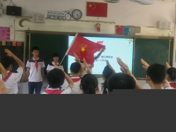 接著,全體隊員重溫入隊誓詞,由離隊隊員代表初二(8)班白軒怡同學發(fā)言,她說:“回顧在少先隊的日子,是難忘而快樂的。忘不了在入隊儀式上,我們莊嚴的宣誓;忘不了那已行過無數(shù)次的少先隊隊禮;忘不了那已在胸前佩戴過無數(shù)次的鮮艷的紅領巾……"