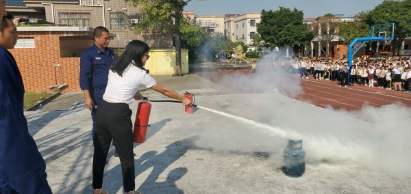 在接下來的總結(jié)會(huì)上,南頭鎮(zhèn)消防大隊(duì)陳隊(duì)長對(duì)今天師生們?cè)谘菥氈械谋憩F(xiàn)給予了充分的肯定,并結(jié)合今天演練的情況,就如何報(bào)火警、火災(zāi)的預(yù)防、火場自救及逃生方法、滅火器的使用等消防安全知識(shí)進(jìn)行了講解,并現(xiàn)場指導(dǎo)師生們學(xué)習(xí)使用滅火器進(jìn)行滅火。