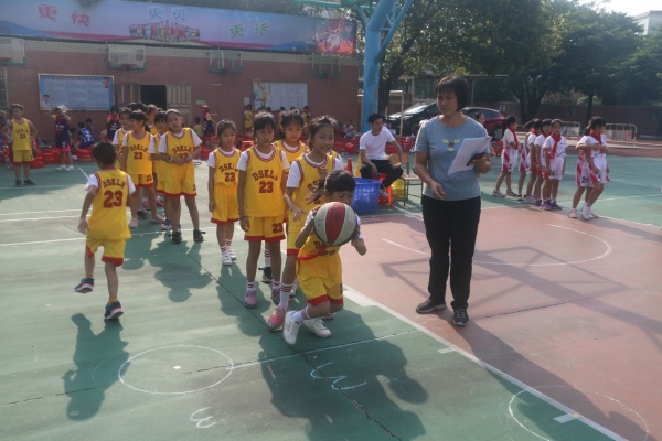 本次的籃球運(yùn)動(dòng)會(huì)分為上午下午兩場,一共有六個(gè)以籃球?yàn)橹黝}的班級(jí)比賽。分別是:上午場:(1)四至六年級(jí)技巧挑戰(zhàn)賽;(2)二至六年級(jí)(一年級(jí)抱球跑)40×20米運(yùn)球迎面接力比賽;(3)五六年級(jí)投球大賽;(4)一至三年級(jí)運(yùn)球繞桿折返跑接力比賽。下午場:(1)一至六年級(jí)籃球接龍比賽;(2)一至六年級(jí)投籃接力比賽。