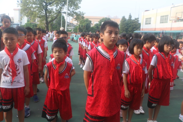 清晨,全校所有方隊(duì)整齊劃一地集中到學(xué)校的運(yùn)動(dòng)場,等待著籃球運(yùn)動(dòng)會(huì)的開始。首先進(jìn)行的是全校師生共同參與的升旗儀式,國旗手一絲不茍,嚴(yán)陣以待,護(hù)旗手莊嚴(yán)肅穆,英姿颯爽!全校師生肅立,高唱國歌。緊接著,籃球運(yùn)動(dòng)會(huì)在凌軍校長的致辭后宣布活動(dòng)開始!整個(gè)運(yùn)動(dòng)場沸騰起來了!