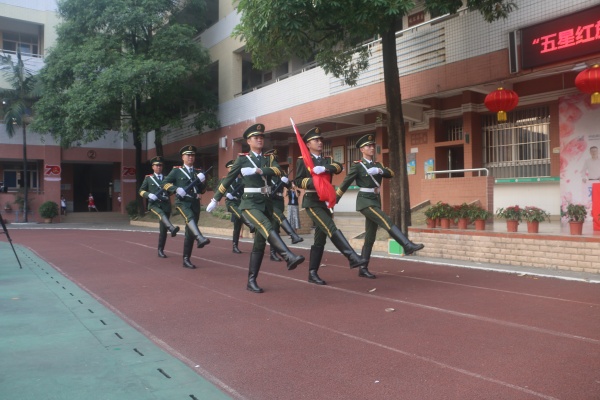 今天的升旗儀式是由原武警北京總隊(duì)天安門國(guó)旗護(hù)衛(wèi)隊(duì)退役軍人來完成的。升旗準(zhǔn)備就緒,原國(guó)旗護(hù)衛(wèi)隊(duì)軍人整裝待發(fā),他們目光堅(jiān)毅,他們身姿挺拔。隨著一聲“升旗儀式,現(xiàn)在開始”,他們踏著整齊的步伐,護(hù)衛(wèi)著國(guó)旗來到升旗臺(tái)前,伴著雄壯有力的國(guó)歌聲,升旗手振臂一揮,鮮艷的五星紅旗徐徐展開,隨風(fēng)飄揚(yáng)。少先隊(duì)員行隊(duì)禮,其他人行注目禮,莊嚴(yán)肅穆。冉冉升起的五星紅旗激發(fā)了同學(xué)們不斷努力學(xué)習(xí)的斗志,點(diǎn)燃了同學(xué)們強(qiáng)烈的愛國(guó)熱情。