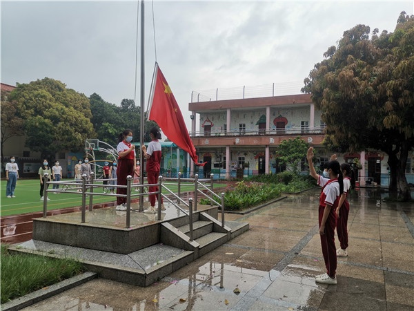 雨停了,升旗手各就各位,全體老師和學(xué)生們進(jìn)行了莊嚴(yán)肅穆的升旗儀式,伴隨著激昂的國歌,回憶著這次為疫情奉獻(xiàn)的英雄們,感恩他們,也感恩祖國,才有今天的平安歸校。