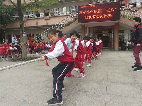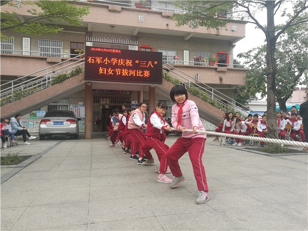 眾所周知,每年的三月八日是國際勞動?jì)D女節(jié),是世界各國婦女爭取和平、平等、發(fā)展的節(jié)日,是很具有紀(jì)念意義的日子。2019年3月8日,本是陰雨綿綿,卻天公做美,天氣轉(zhuǎn)晴,黃圃鎮(zhèn)石軍小學(xué)以拔河的形式開展慶?!叭掳恕眿D女節(jié)的活動。
