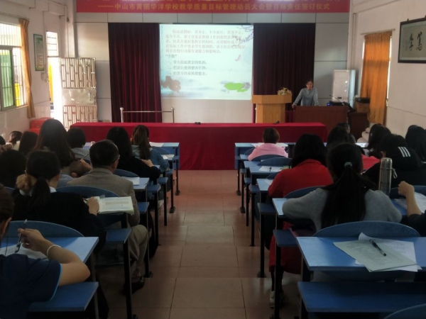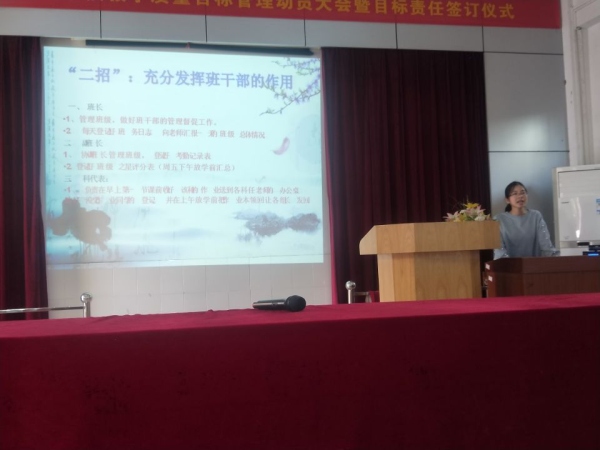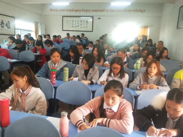 下午的會議分兩個流程,劉丹老師與大家分享了班級管理的經(jīng)驗;華洋學校校長辦公室莫美瓊主任圍繞“品連心 同奮進 敢超越”2019年的工作主題,解讀了華洋學?!奥鋵嵥捻椆こ?,夯實三大主科雙基”活動方案。首先,劉丹老師給大家簡單闡述了什么是班級管理和班級管理的基本任務,接著憑著自己在班級管理方面的經(jīng)驗給大家介紹了六個班級管理的小妙招,分別是:一、做好晨檢工作,了解學生動態(tài);二、充分發(fā)揮班干部的作用;三、用心關(guān)愛每一位學生;四、要認真負責,腿勤手勤;五、捕捉每個學生的閃光點 ;六、巧用小組合作。然后,莫美瓊主任給我們詳細解說了中山市黃圃華洋學校2019年“落實四項工程,夯實三大主科雙基”活動方案,在解讀的過程中,莫主任憑借自己的經(jīng)驗,給老師們一一敘說了如何在語文、數(shù)學、英語三大學科的學習過程中,有效落實四項工程,與老師們分享應從哪方面提高教學水平,從根本上提高學生的知識水平。并強調(diào)老師應該把教育當成一門科學,一門藝術(shù),不斷去追求,不斷去研究,不斷去創(chuàng)新。