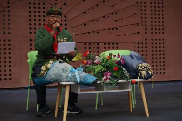 在演講中,何思源爺爺向大家講述了當(dāng)年他參加對越自衛(wèi)反擊戰(zhàn)的故事。無論是靠松山戰(zhàn)役、嫩金山戰(zhàn)斗,還是馬布爾戰(zhàn)役,每個戰(zhàn)場的地形都十分復(fù)雜和險峻,而且時刻臨著敵人的槍林彈雨,戰(zhàn)士們的進(jìn)軍之路可謂舉步維艱,不少同志壯烈犧牲,而他自己本人也多處負(fù)傷,至今身上仍有多處彈片。談及隊(duì)友的英勇獻(xiàn)身,何爺爺忍不住含淚動容,并期望年輕一代要銘記歷史,緬懷先烈,向先烈學(xué)習(xí)。