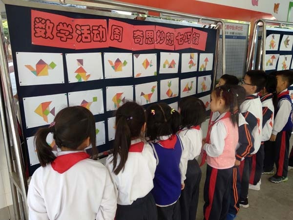 據(jù)悉,該校還根據(jù)各年級的學(xué)生特點,在數(shù)學(xué)周里設(shè)計了創(chuàng)意拼搭、奇思妙想七巧板、用手估測長度、24點大王、數(shù)獨等形式多樣的趣味數(shù)學(xué)活動。一年級的孩子開展創(chuàng)意拼搭活動,尋找生活中的物品,進(jìn)行有趣的拼搭,同時感受長方體、正方體、圓柱、球四個物體的特征,加深對物體特征的理解。二年級的孩子開展奇思妙想七巧板活動,每人準(zhǔn)備一副七巧板,拼出指定的有趣圖案,最后按拼法在輪廓圖上用尺子鉛筆進(jìn)行畫分、分解。通過七巧板的拼擺、繪制,孩子了解到七巧板這種古老的數(shù)學(xué)拼圖游戲,體會了數(shù)學(xué)的無窮樂趣。此外,每天課間活動時,三年級的孩子們則用手估測出1厘米、1分米、1米或一些圖形的長度,積累了用“身體尺”測量活動經(jīng)驗,培養(yǎng)孩子們的創(chuàng)新精神和應(yīng)用意識。四、五年級的孩子們開展了“24點速算”趣味比賽活動,活動中采取了個人擂主賽,采用積分淘汰制,比賽中凸顯了小選手的靈活機(jī)智;團(tuán)體賽中,各個代表隊隊員群策群力,在體驗方法多樣化中彰顯了智慧。六年級的孩子開展了“數(shù)獨等你來玩”的活動,題目從四宮到九宮,難度逐漸增加,孩子們沉著冷靜,積極思考,認(rèn)真作答,安靜的賽場緊張而有序。各項比賽結(jié)束后,經(jīng)過老師們的認(rèn)真篩選,本次活動周的一、二等獎新鮮出爐!