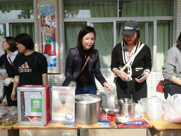 由于準備充分,義賣當天同學們和家長帶著他們自制的食品以及籌集的衣服、手套、圍巾、玩具、學習用品等等物品前來義賣,大家爭獻愛心!義賣形式有小食攤檔、義賣物品攤檔、游戲籌款攤檔、義演攤檔,形式多樣,學生及家長參與熱情高漲。參加義賣的班級都準時地到達義賣場地點,迅速布置好本班的攤位,盡情地吆喝著?,F場氛圍霎時變得異常活躍,整個義賣市場應接不暇,得到了不少路過的老師、學生、家長的積極響應。