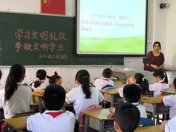 首先,學(xué)校以國(guó)旗下講話的形式向全校老師和同學(xué)發(fā)起了“同做文明人,共創(chuàng)文明城”的倡議。四(2)班曹可欣作為學(xué)生代表,激情洋溢地闡述了創(chuàng)建文明城市和文明校園的重要性和必要性,講述了小學(xué)生如何從日常的衣著、言談舉止、儀態(tài)表情等方面學(xué)習(xí)做一個(gè)文明有禮、自信大方的小學(xué)生。其次,學(xué)校在各班級(jí)開(kāi)展“學(xué)習(xí)文明禮儀,爭(zhēng)做文明學(xué)生”的主題班會(huì)活動(dòng),從多個(gè)方面向?qū)W生展示文明禮儀的具體表現(xiàn),號(hào)召學(xué)生從自身做起,從細(xì)節(jié)做起。比如,與人和睦,和同學(xué)相互有禮有節(jié);與人和諧,見(jiàn)到老師主動(dòng)問(wèn)好,“謝謝”“對(duì)不起”“請(qǐng)”等文明語(yǔ)言常放嘴邊;與人友善,面帶微笑,做文明言行的自覺(jué)實(shí)踐者。最后,學(xué)校以班級(jí)為單位評(píng)選了“星級(jí)好少年”,“愛(ài)國(guó)”“文明”“誠(chéng)信”“友善”四枚印章是其組成部分。評(píng)選上的同學(xué)在全班同學(xué)的注目和掌聲中走向講臺(tái)、戴上印章,帶著一份內(nèi)在的自信和滿足,帶著一份同伴的信任和肯定。他們將是班級(jí)和學(xué)校行走的文明之風(fēng)、盛開(kāi)的文明之花,在校園里散播著文明的馨香之氣。