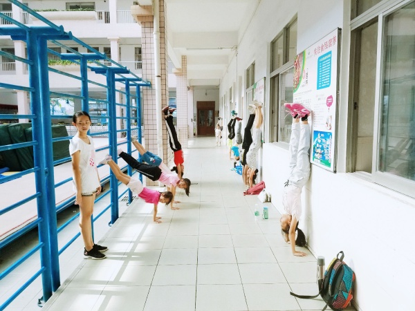 自8月份廣東省第十五屆省運(yùn)會(huì)結(jié)束后,一批老隊(duì)員向?qū)W校提出退役的申請(qǐng),只剩下本校的8名隊(duì)員。9月份中旬,在學(xué)校體育主管梁主任的發(fā)動(dòng)和組織下,通過(guò)孩子的自主報(bào)名,從二至五年級(jí)中選拔出30多名孩子進(jìn)行訓(xùn)練,使技巧隊(duì)伍得以充實(shí)壯大??山酉聛?lái)馬上就要參加10月21日在江蘇沛縣舉行的全國(guó)技巧賽了,短短的一個(gè)月時(shí)間里,蔡陳老師犧牲國(guó)慶假期的休息,帶領(lǐng)隊(duì)伍練基本功,編排舞蹈動(dòng)作,晚上還得加班選編音樂(lè)......突破各種困難,學(xué)校技巧隊(duì)如期到達(dá)江蘇沛縣參加本次全國(guó)賽。