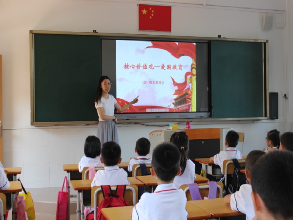 升旗儀式結(jié)束后,各班孩子在班主任的組織帶領(lǐng)下,在課室繼續(xù)進(jìn)行《我和我的祖國(guó)》主題班會(huì)課。有的班級(jí)舉辦“迎國(guó)慶朗誦會(huì)”,抒發(fā)了他們對(duì)祖國(guó)的贊美之情,樹(shù)立了報(bào)效祖國(guó)的崇高志向;有的班級(jí)開(kāi)展“祖國(guó)知識(shí)競(jìng)答”活動(dòng),寓學(xué)于樂(lè),讓學(xué)生在趣味競(jìng)答中更了解了祖國(guó),從而加深了對(duì)祖國(guó)的認(rèn)識(shí)與熱愛(ài);有的高年級(jí)班會(huì)由學(xué)生主持,同學(xué)們結(jié)合自身實(shí)例,表達(dá)愛(ài)國(guó)熱情,講中國(guó)故事,夸中國(guó)名人,增強(qiáng)了民族自尊心和自豪感。同時(shí),參與活動(dòng)的教師,身心也受到洗禮。