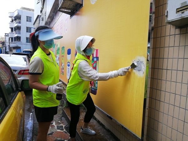 志愿者們利用鏟刀、鋼絲刷、噴壺等工具,認(rèn)真細(xì)致地將道路兩側(cè)視野內(nèi)的路燈桿、公交站牌、沿街墻(樓)體、樹干上等各類亂貼亂畫、小廣告進(jìn)行全面清理;現(xiàn)場(chǎng)發(fā)現(xiàn)張貼、噴涂行為的人,志愿者會(huì)對(duì)他們積極教育宣講。在大家的努力下,清除墻體廣告、“牛皮癬”多處。