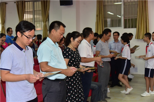 隨后,啟發(fā)中學謝永芳校長發(fā)表了慶祝第35個教師節(jié)講話,謝校長代表學校祝愿老師們節(jié)日快樂,并提到“教師推崇真誠與廉潔,因而教師的心靈永遠那么坦蕩而年輕;教師信奉付出與汗水,因而教師的收獲永遠那么殷實而厚重;教師播種希望與快樂,因而教師的笑容永遠那么燦爛而迷人;教師打造現(xiàn)在與未來,因而教師的名字永遠那么響亮而多情?!币舱窃诶蠋焸兊呐ο拢瑔l(fā)中學取得了14次中山市中考教學質(zhì)量評價先進學校一等獎殊榮,2019年中考三大高中錄取率超過20%,在全市鎮(zhèn)區(qū)公辦學校中名列前茅。接著,學生代表為老師們獻上了精心制作的卡片。