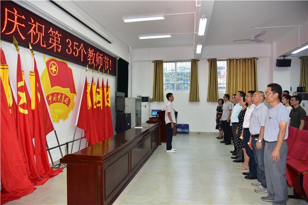 9月9日上午,啟發(fā)中學開展了慶祝第35個教師節(jié)活動。全校老師齊聚學校明禮堂,共同慶祝教師節(jié),慶?;顒釉谇f嚴肅穆的國歌聲中拉開了序幕,先由學生代表發(fā)表感念師恩演講,接著由雙人詩朗誦歌頌老師。