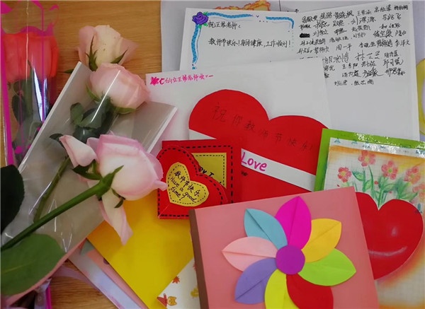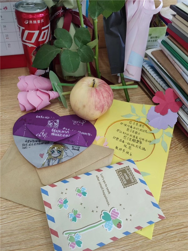 教師節(jié)當天,學校團委、家委會為老師們準備了精美的賀卡,老師們一上班就收到了滿滿的祝福。