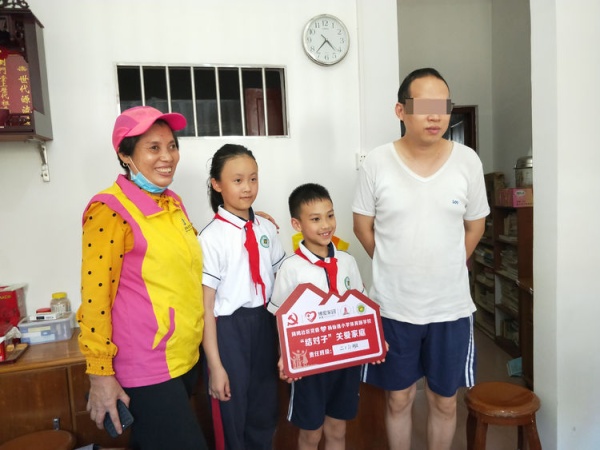 啟動儀式結(jié)束后,各班級代表在社區(qū)工作人員、愛心志愿服務(wù)隊(duì)的帶領(lǐng)下,開展第一次慰問活動,并為各個(gè)家庭掛上關(guān)愛牌。