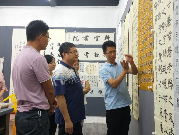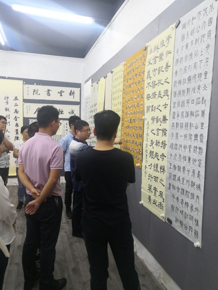 葉校長還詳細地為老師們介紹他們辦學理念、教學方法,在教學過程中不限于一室,不拘泥于一家,不限于一書體,可為學生提拱適合自己的書法學習方向,最大限度滿足學書者的個性化學習。老師們無一不被其用心教學所感動,被學員的優(yōu)秀作品所震撼。