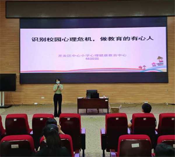 在疫情特殊時(shí)期,為全面保障校園安全,提高全體教師識(shí)別及應(yīng)對(duì)校園心理危機(jī)的能力,學(xué)校專(zhuān)職心理老師楊圓圓在全體教職工工作會(huì)議上開(kāi)展《識(shí)別校園心理危機(jī),做教育的有心人》的專(zhuān)題培訓(xùn)。