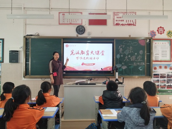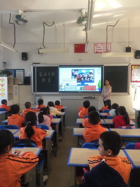 為了激發(fā)學生的學法熱情,播撒法治信仰的種子,讓學生認識了解憲法、尊崇維護憲法。2019年12月2日,開發(fā)區(qū)中心小學組織開展了“憲法教育大課堂”主題班會活動。各班有序組織,班主任認真?zhèn)湔n,集合學生年齡特點,圍繞“尊崇憲法、學習憲法、遵守憲法、維護憲法、運用憲法”等方面組織落實班會課內容。
